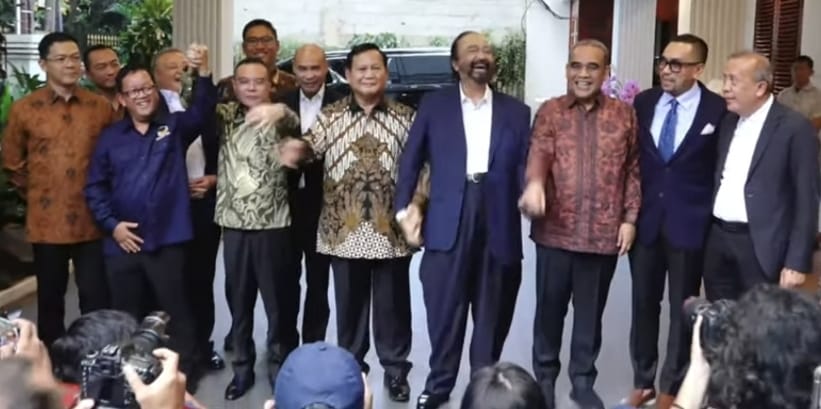 “Dalam pembicaraan antara Pak Prabowo dan Pak Surya Paloh dibicarakan tentang persoalan-persoalan yang dihadapi bangsa Indonesia pada masa yang akan datang beberapa tantangan yang dihadapi termasuk peluang untuk kita menjadi sebuah bangsa negara yang bisa keluar dari problema tersebut. Termasuk tentang situasi dan kondisi dunia saat ini termasuk kepada problem ekonomi keamanan dan seterusnya,” kata dia di Jakarta.