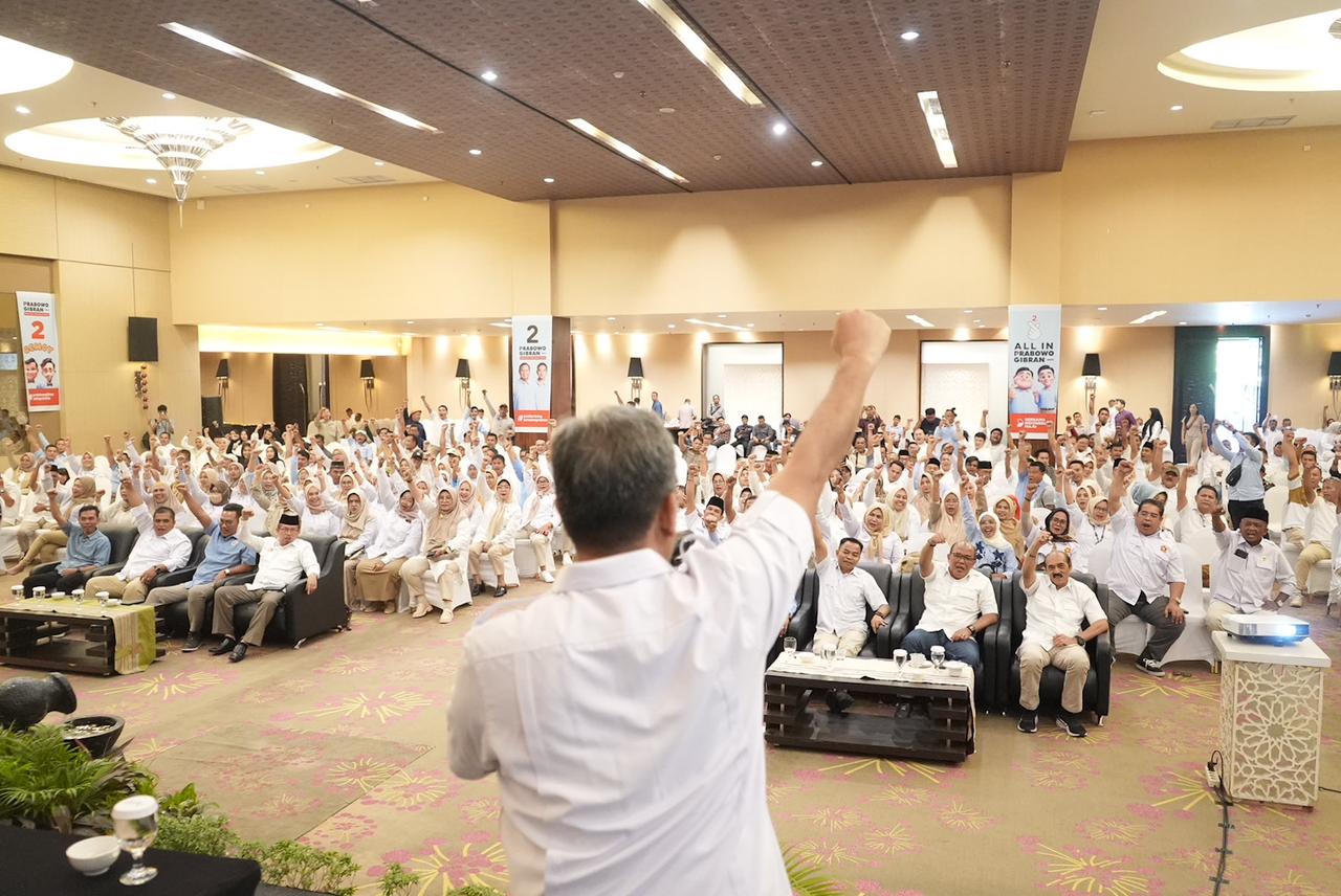 Sekjen Partai Gerindra Ahmad Muzani menghadiri konsolidasi Pemenangan Satu Putaran bersama kader Gerindra Sumatera Barat pada Selasa (30/1). Dalam sambutannya, Muzani menegaskan bahwa Sumatera Barat masih menjadi kandang atau basis pemilih Prabowo di Pilpres 2024.